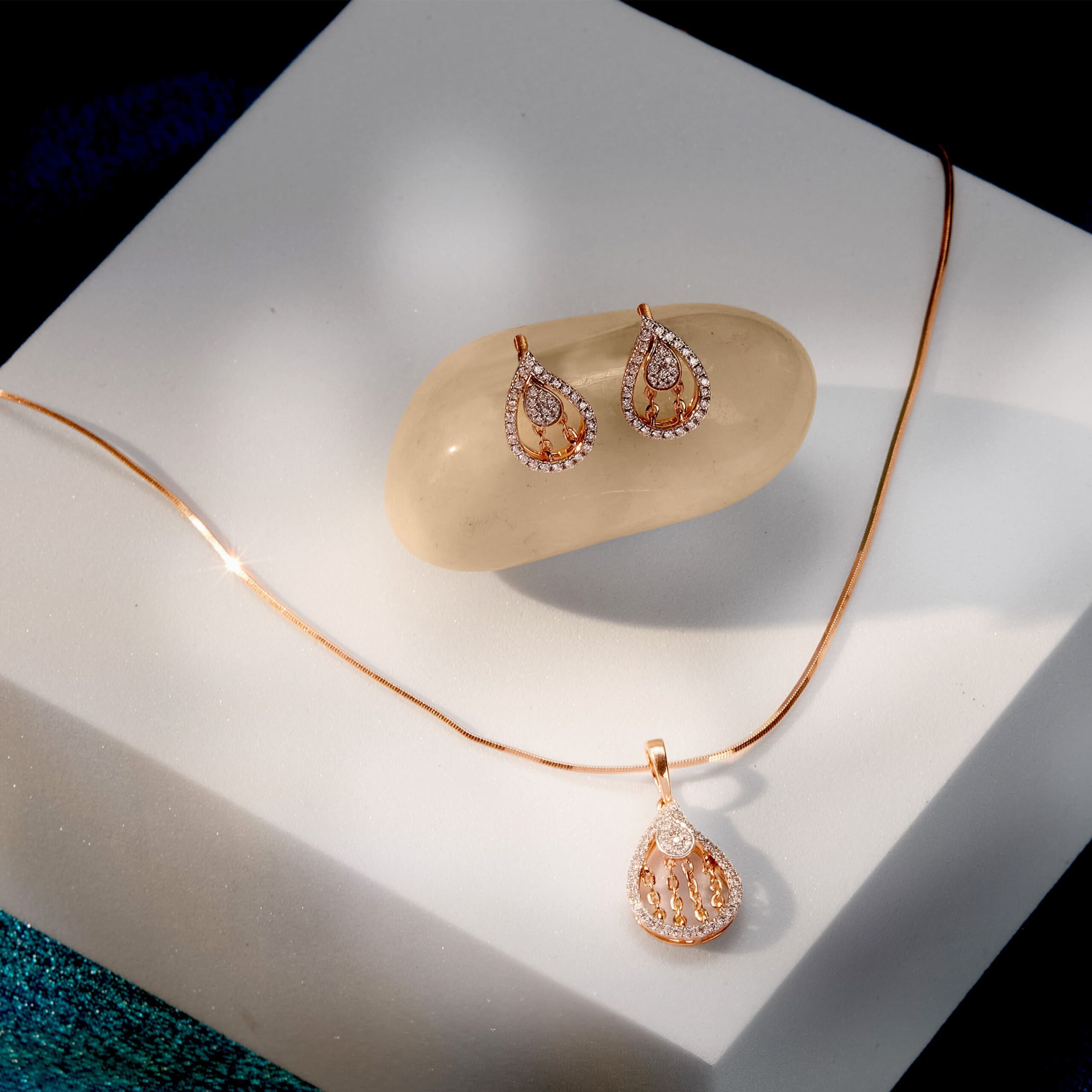 Stylish 18K Diamond Pendant Set