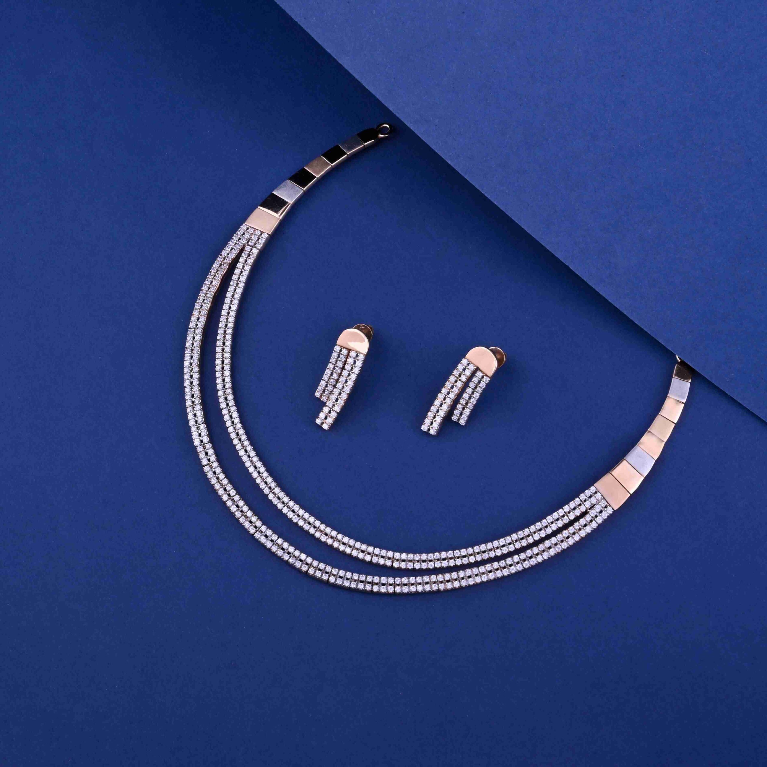 Minimalist Gold Necklace Set with AD Stones